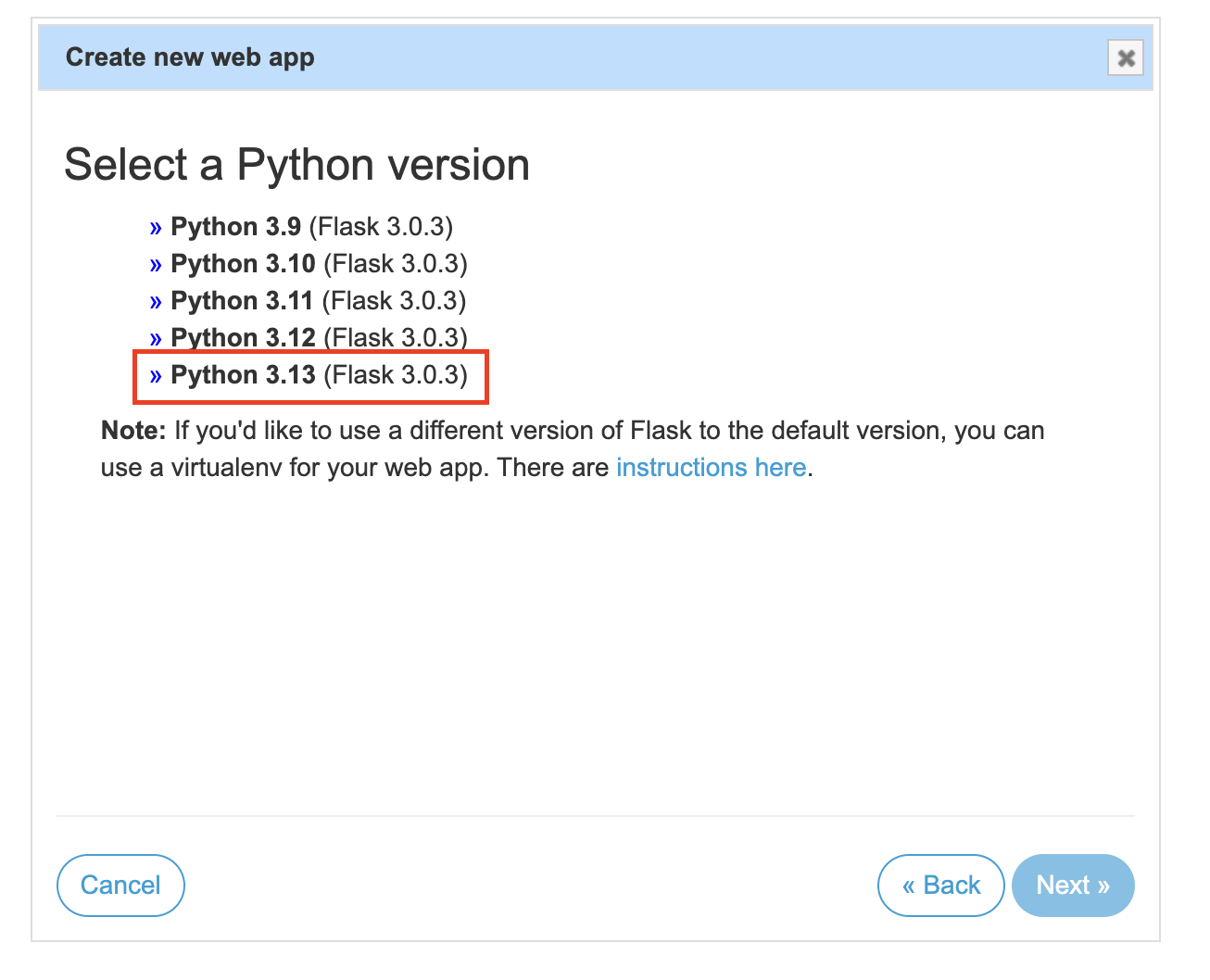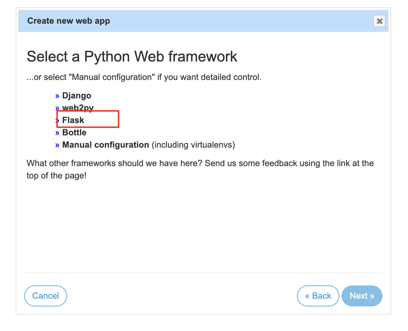 4. "Flask" 선택