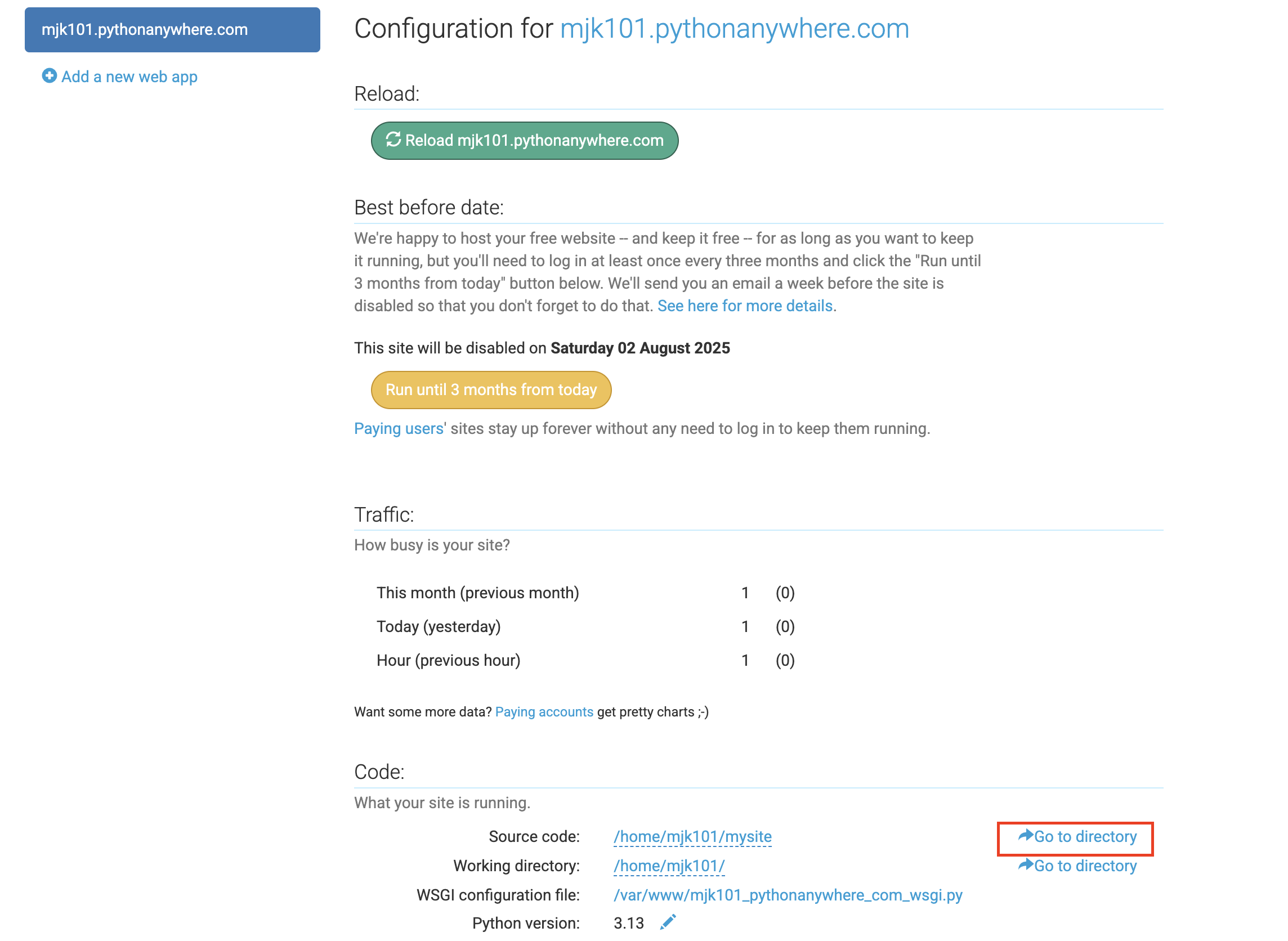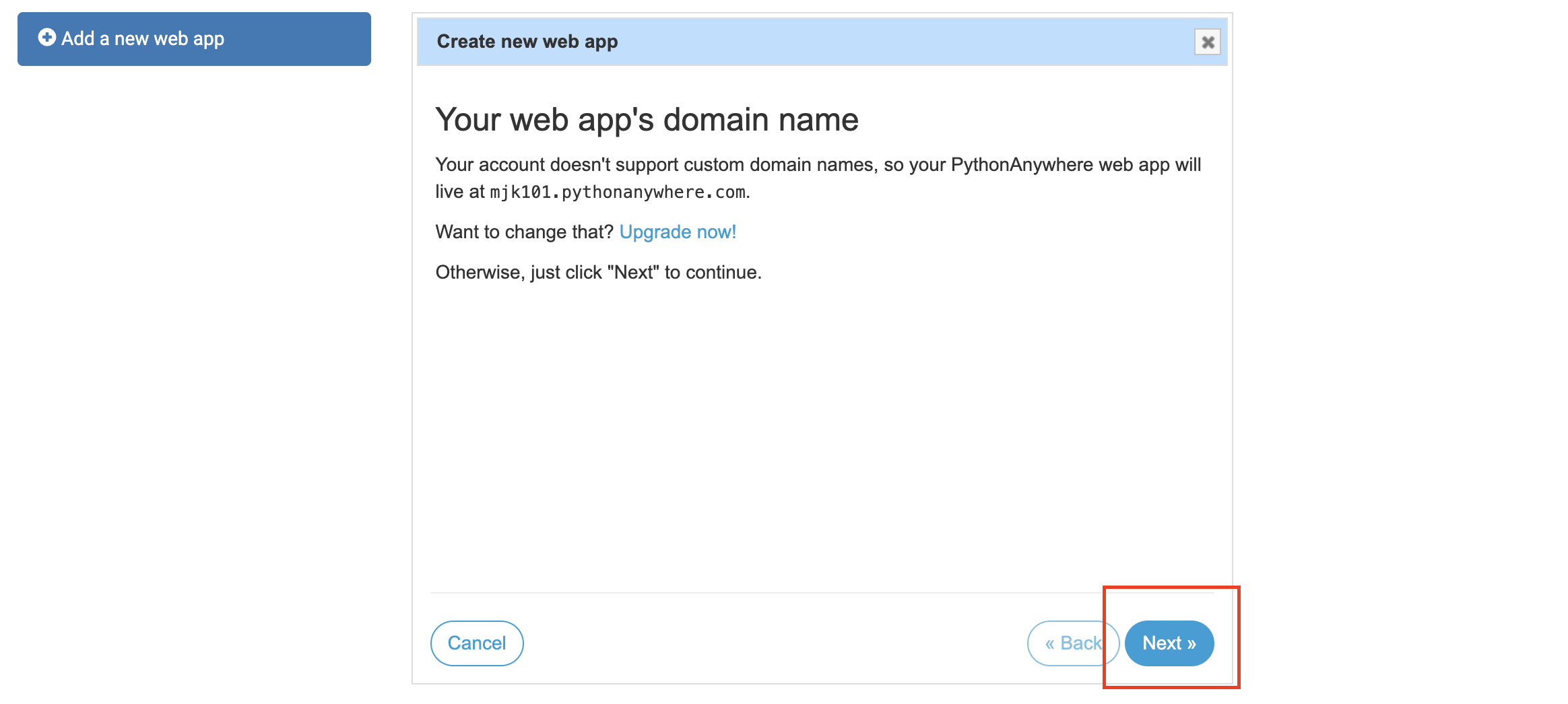 1-a. 이때 주의할 점은 website url이 [id].pythonanywhere.com 으로 설정되므로 id를 신중히 결정하자.