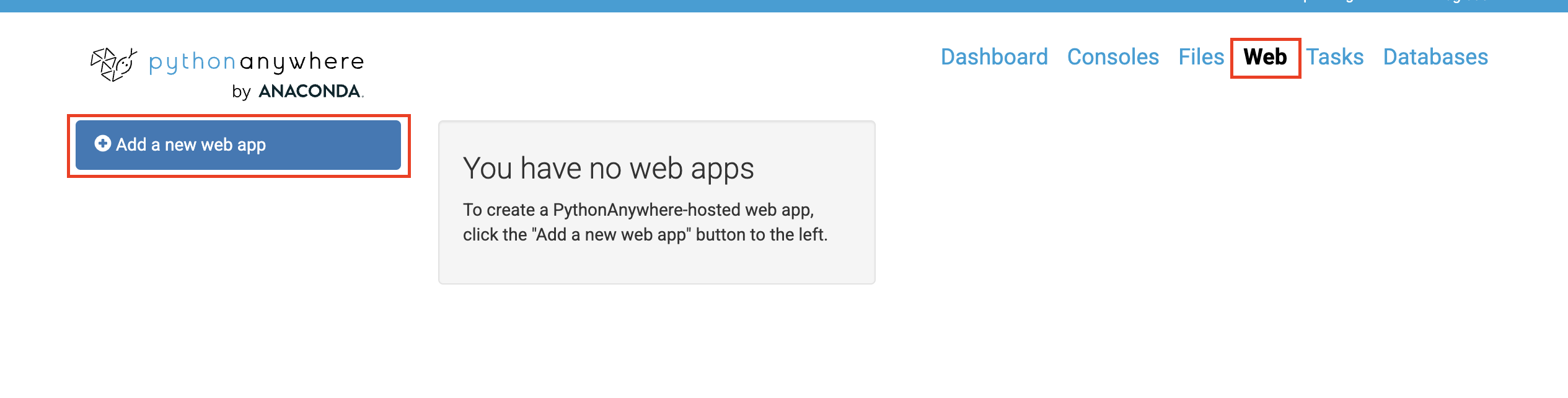 2. 홈페이지에서 web에 들어가서 "add a new web app" 선택