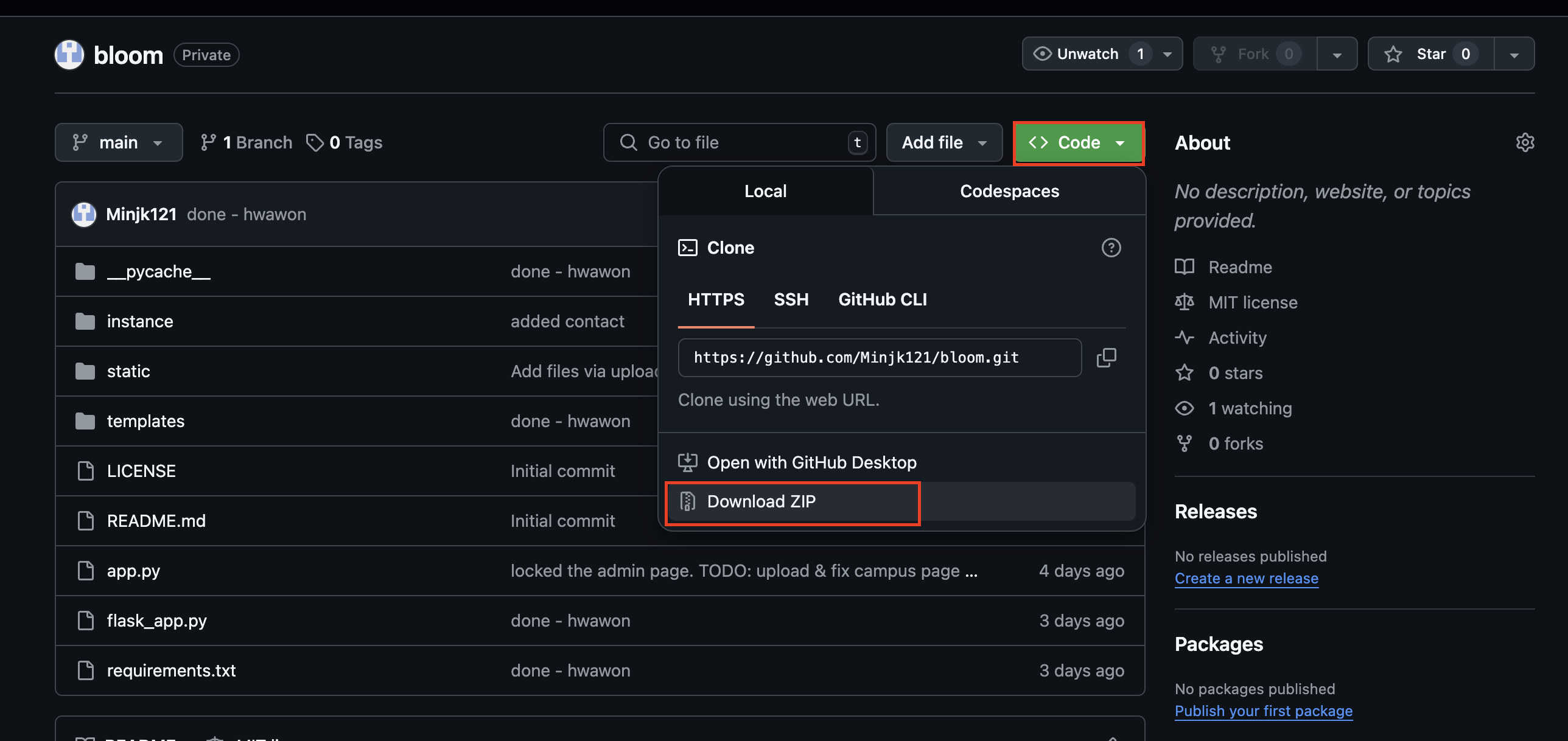 8. github에서 zip file을 다운해준다.